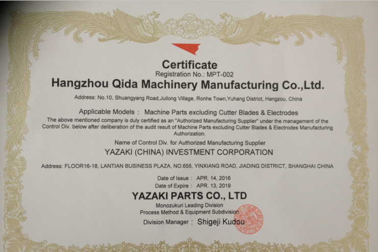 世界500強企業-日本矢崎為我公司頒發的認證證書